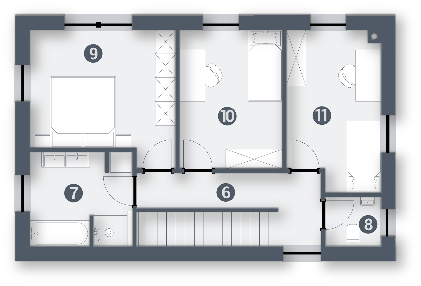 Die klare Trennung zwischen dem weitläufigen Erdgeschoss und dem privaten Obergeschoss sorgt für eine Struktur, die im Alltag überzeugt. Hier wird kein Quadratmeter verschwendet – jeder Bereich ist exakt auf die Bedürfnisse modernen Wohnens zugeschnitten.