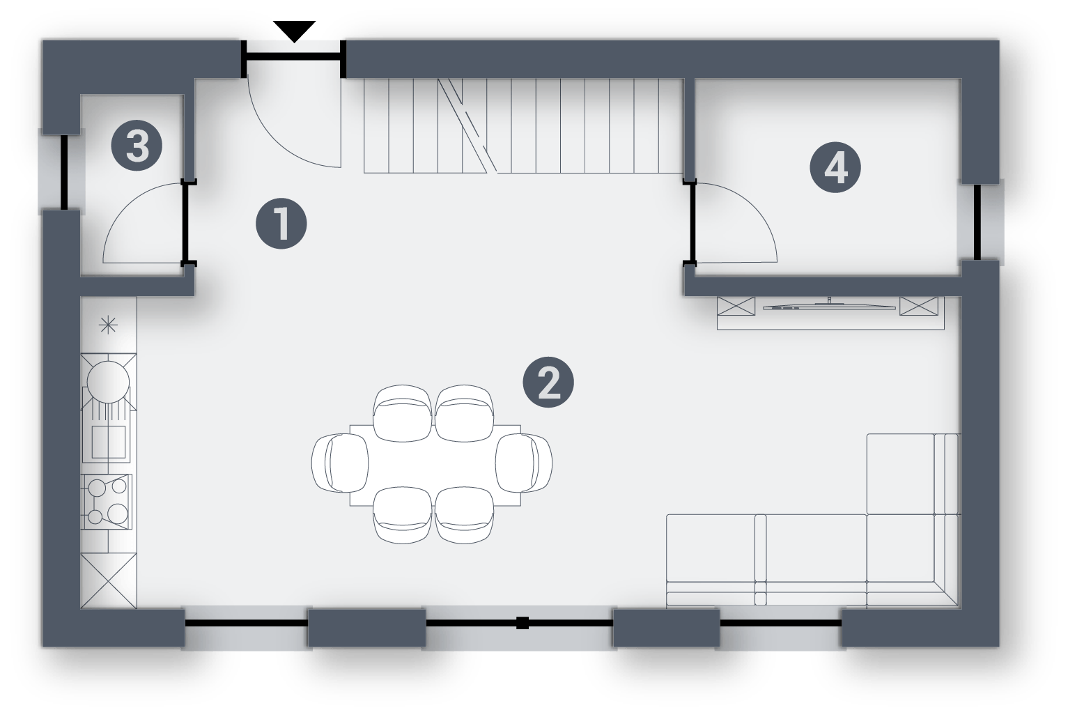 - Integrierte Technik: Der separate Technikraum (Punkt 4) im Erdgeschoss ist direkt vom Wohnbereich zugänglich und bietet zusätzlichen Stauraum.